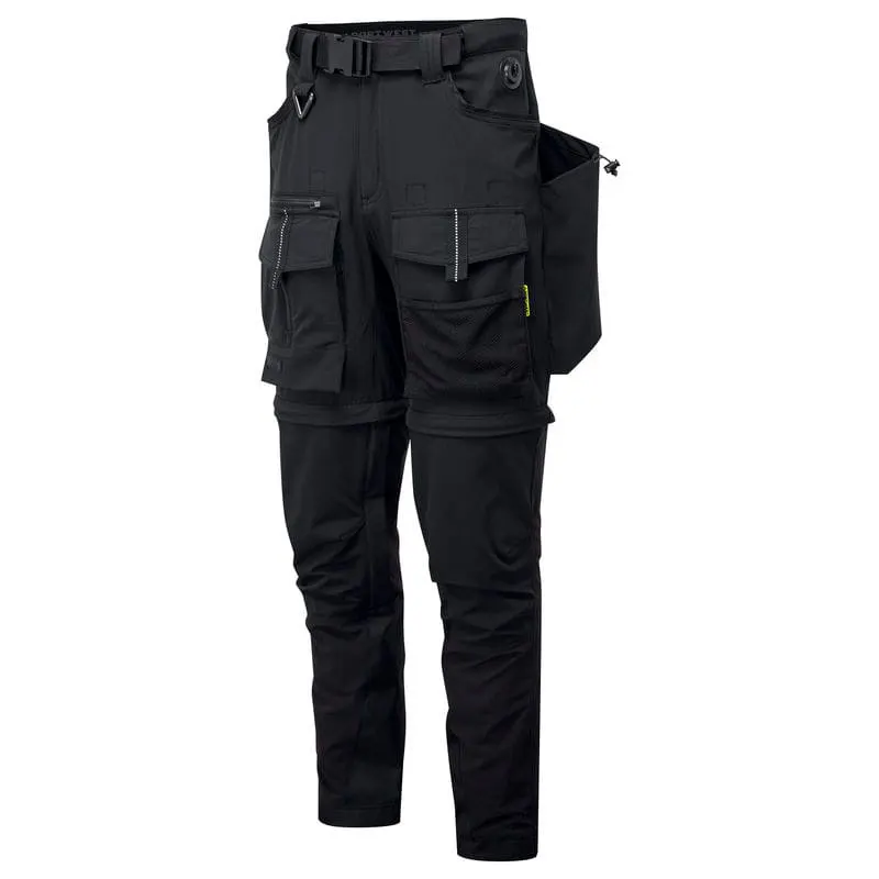 The Ultimate modular 3-in-1 trouser design for your every need. The 3-in-1 design converts a work trouser to a work short or a EN20471 Class 1 work trouser. You have every thing you need. Pockets with magnetic flaps so they don’t get in the way, kneepads pockets, large built-in side pockets for large tools, spray cans or just fold up the legs when in shorts mode and keep them safe. Built-in waistband, front of leg cargo pocket for easier use when working, with a mesh mobile phone pocket. Plus the unique clip on pocket system with the use of three pockets that can clip on the front or the back of the trouser.